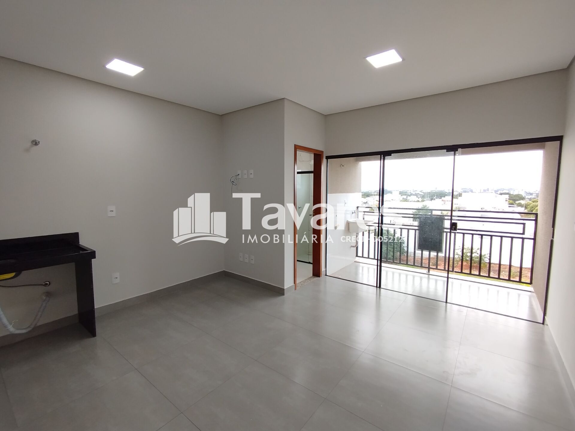 Ambiente integrado com sala, cozinha e quarto, além de banheiro e sacada com lavanderia, oferecendo conforto e funcionalidade no dia a dia.